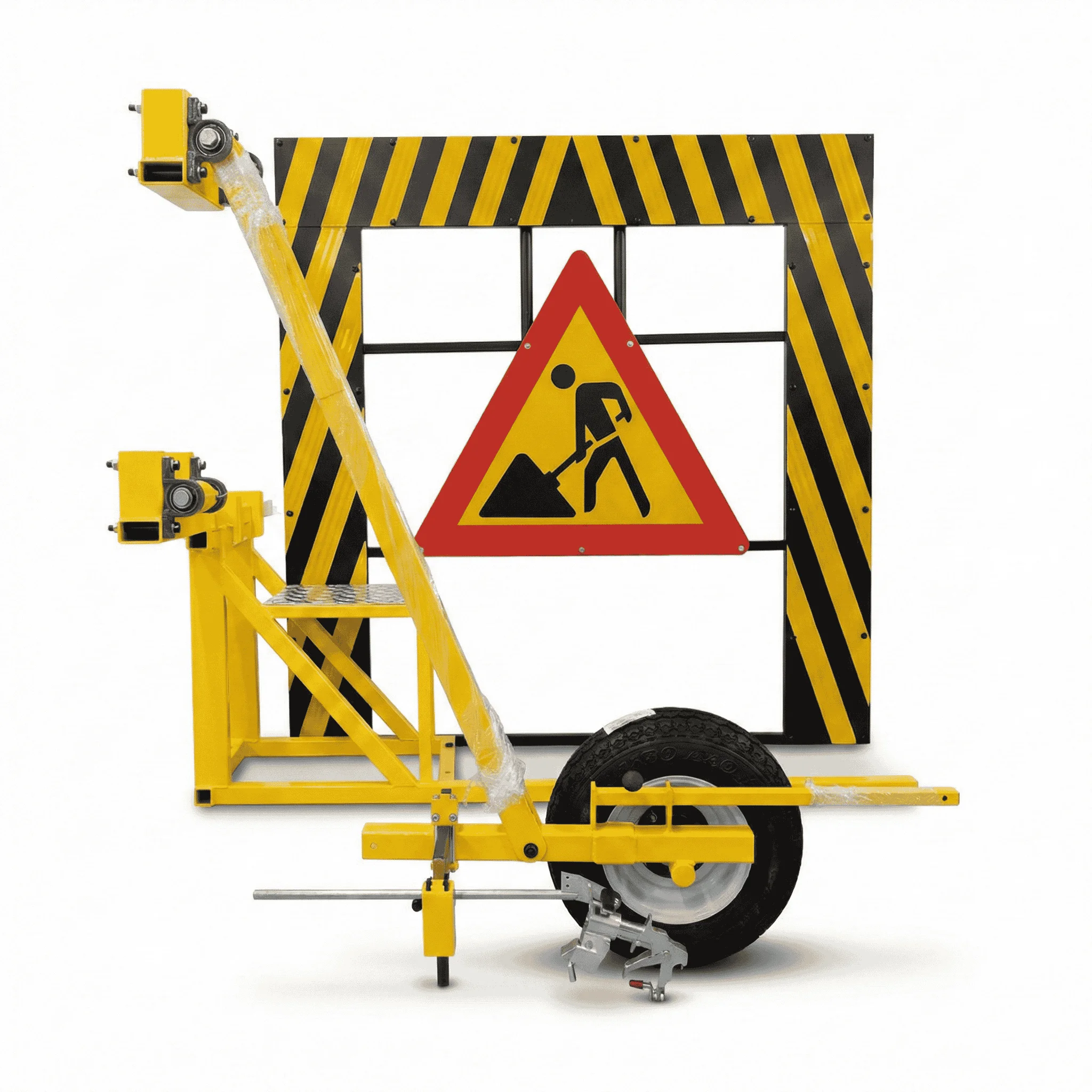Our road marking system also includes a pointer fitted to the front of the vehicle for accurate line striping as well as a glass bead dispenser. The adjustable arm and wheel can easily be raised and latched to the side of the vehicle when not in use.
